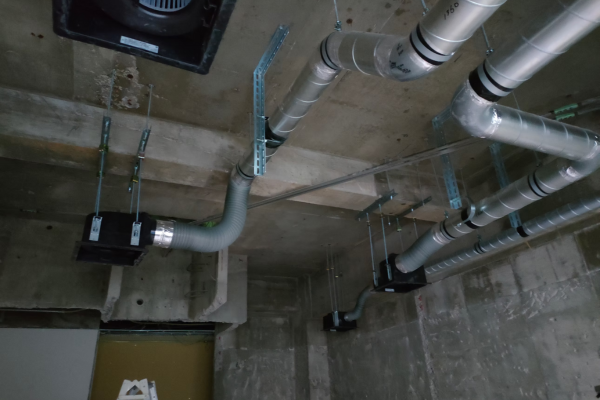 既存設備との取り合いを確認し、効率的な換気が行えるよう計画しています。
