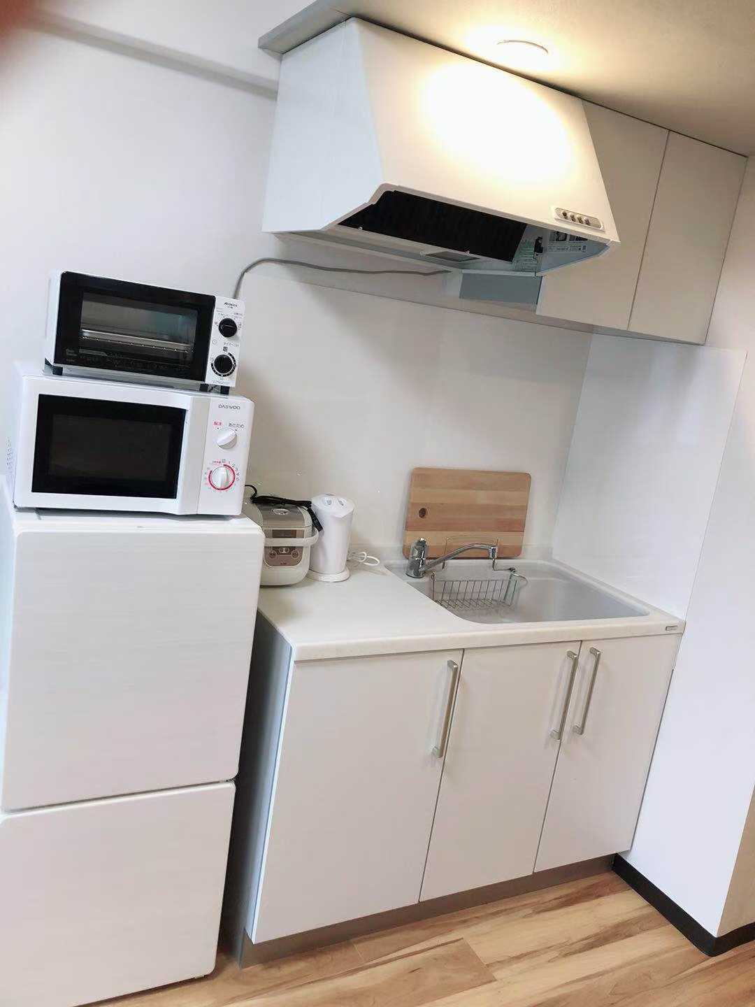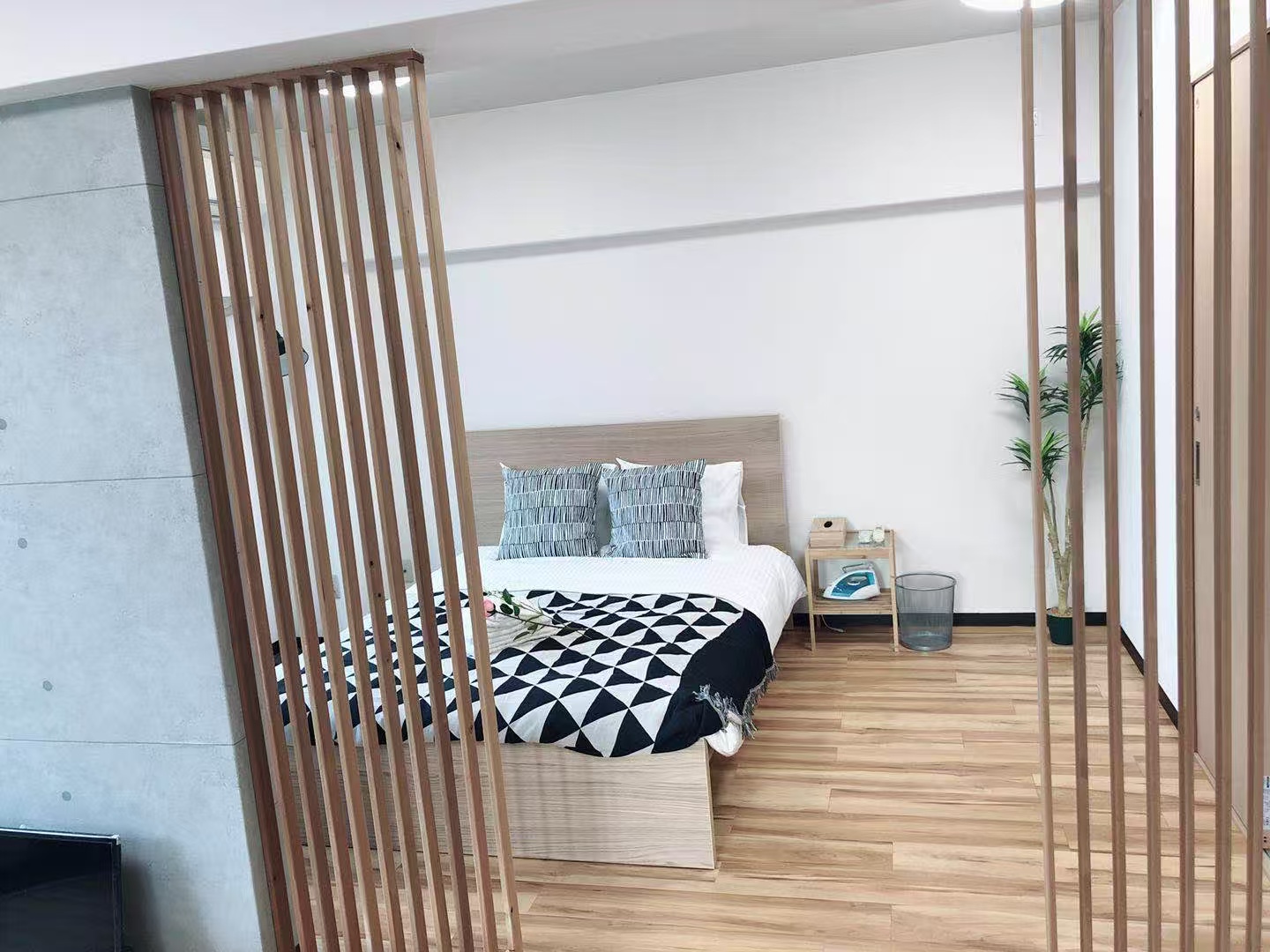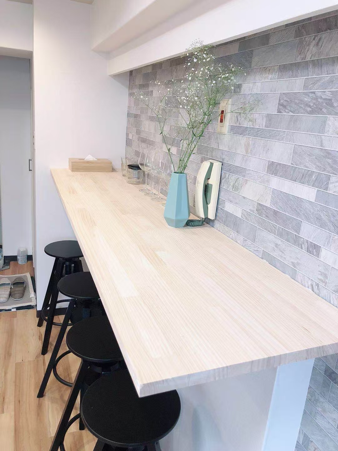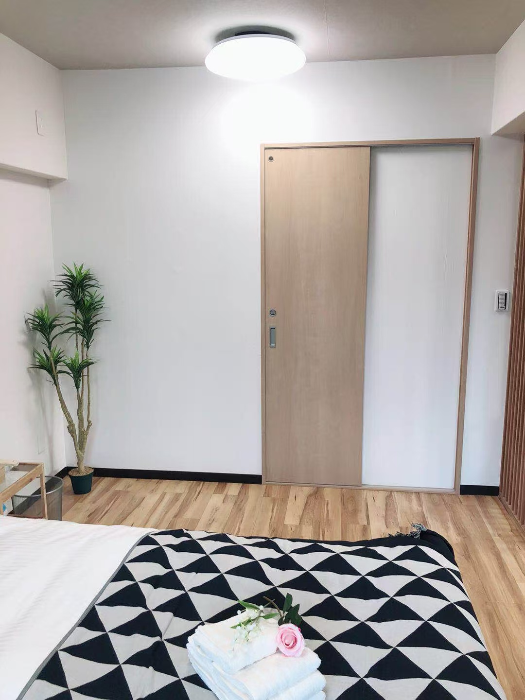 木目を基調としたやわらかな素材感に、白をベースとした明るい内装を合わせ、清潔感のある居住空間へと整えました。 ルーバーによる緩やかな仕切りやカウンターの設置により、ワンルームの中にも過ごし方の幅を持たせ、住まいとしての使いやすさを高めています。